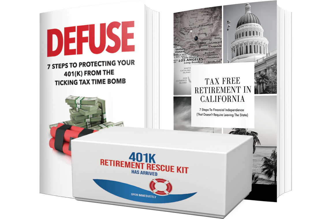 My FREE Books – DEFUSE & TAX FREE RETIREMENT IN CALIFORNIA – reveal exactly how you can experience ZERO TAXES in retirement and overcome the IRS lien on your 401k, IRA, & 403b which threatens your future lifestyle.